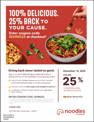 Fundraise with us easily with Fundraiser Blankets to help our group easily raise money for what we need this year! Fundraising with these soft, cozy spirited custom blankets allows us to reach our goals quicker! You can help by buying a blanket for a local game, stadium, to use at home or as a gift! Ready to show your support? Contact our Fox River Grove PTO fundraising coordinator to reserve one today.